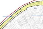 28,3 m širina zemljišta, duljina iznosi 64 m s jedne i 77 m sa druge strane