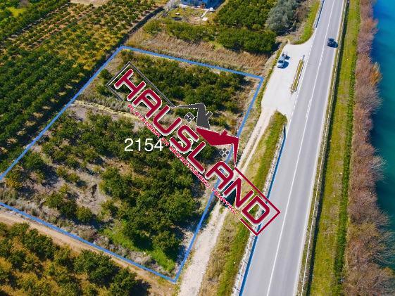 Parcela je dimenzija cca 57 m uz cestu i 40 m unutra. Sva infrastruktura uz parcelu, vlasništvo uredno. Trenutno je na zemljištu nasad mandarina.